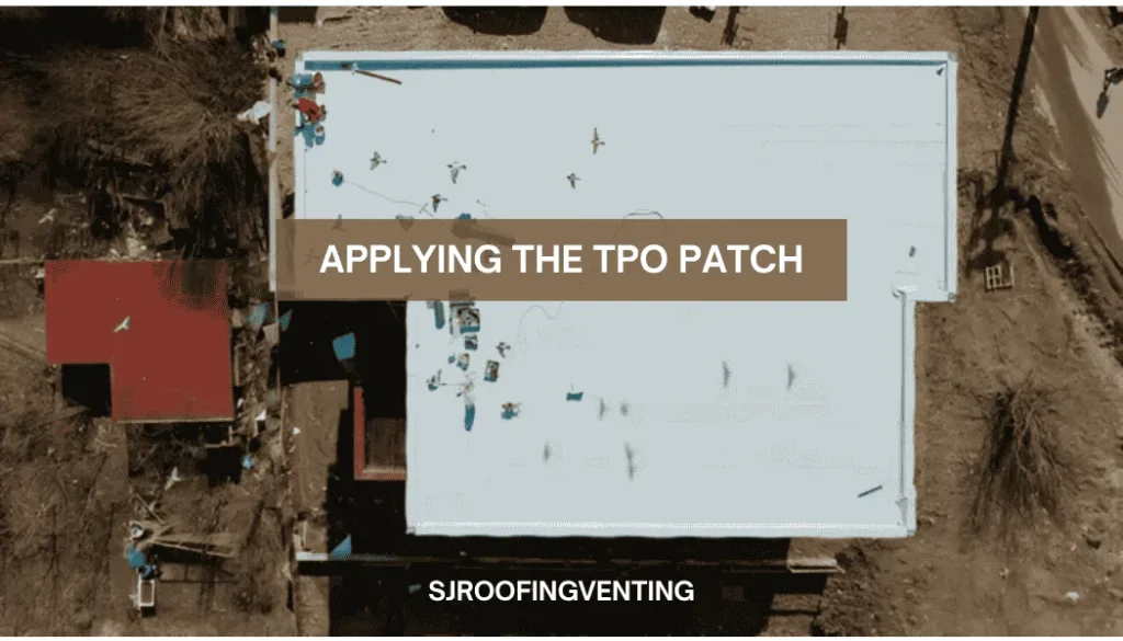 Now the next step is cleaning and finishing the patch on the TPO. So, let’s go ahead and clean everything up to make it look good. Okay, we’ll need a little bit of a scrub block around the area, and that should be fine. I’m going to mark it here — we’ll put our initials, the date, and add a small puncture. It’s a bit tricky, but it will get done okay. Make sure you do the patch properly, guys. Take care and see you next time. Remember, the cleaning and finishing of the patch is a really important step among all the steps in TPO repair.
